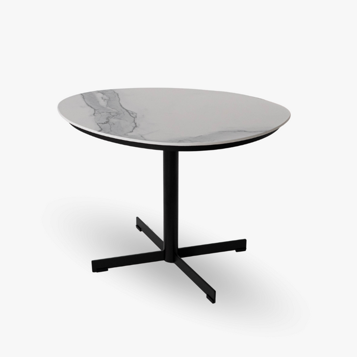 Der SAVA Couchtisch, gefertigt aus hochwertiger, italienischer marmorierter Keramik, fasziniert durch seine ästhetische Pracht und unübertroffene Qualität. Die organischen Konturen dieses Tisches sind besonders ansprechend und verleihen dem Raum eine natürliche Eleganz. Das filigrane Gestell aus pulverbeschichtetem, mattem Schwarz bietet nicht nur Stabilität, sondern auch großzügigen Platz für die Beine, wodurch der Tisch nicht nur zum Blickfang, sondern auch zu einem äußerst komfortablen Möbelstück wird.