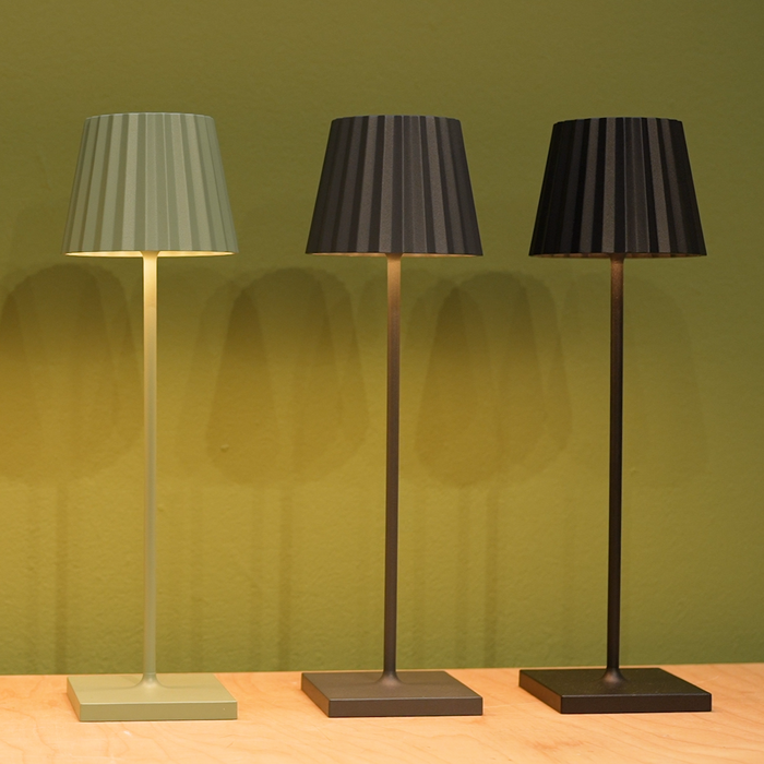 akkubetriebene Tischleuchte im minimalistischen Design für Draussen und Drinnen