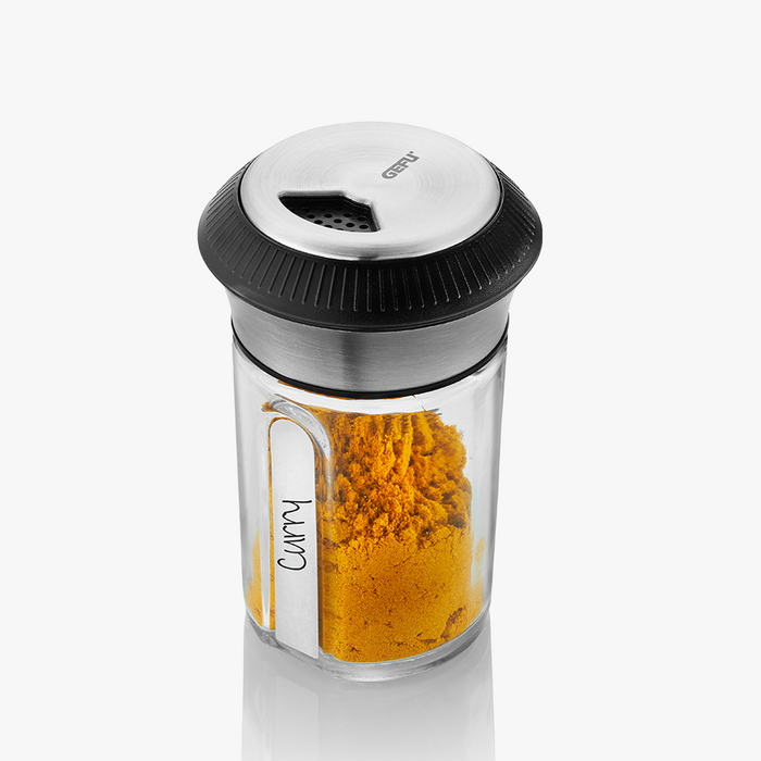 Der formschöne X-PLOSION Gewürz-und Kräuterstreuer mit Doppelnutzen: ein Glaskorpus mit luftdicht verschließbarem Deckel bewahrt das volle Aroma von duftenden Gewürzen wie Curry- oder Paprikapulver, von getrockneten Kräutern und wertvollem Tee. Der drehbare Streukopf des Deckels ermöglicht perfektes Dosieren von grob bis fein.
