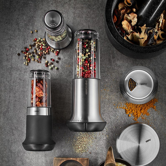 Material: hochwertiger Edelstahl / Kunststoff / Keramikmahlwerk / Aluminium
