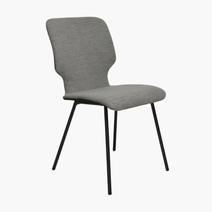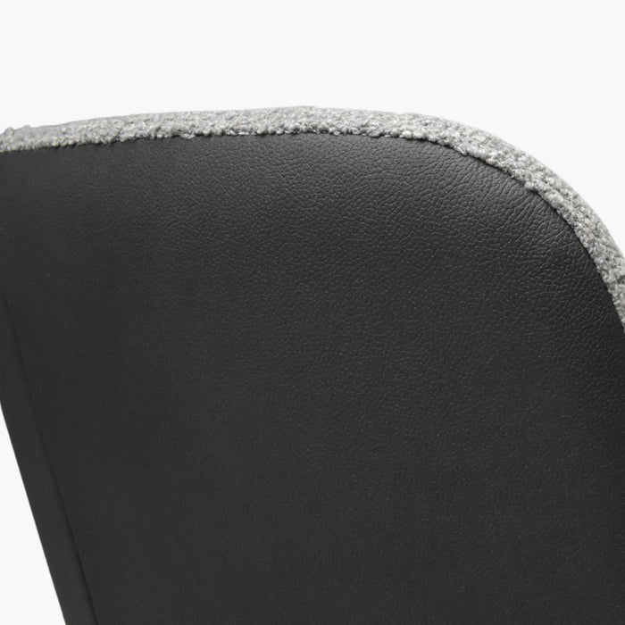 Die großzügige Sitzfläche ist mit weichem Bouclé-Stoff bezogen, der nicht nur gemütlich ist, sondern auch mit seiner eleganten Struktur einen edlen Look verleiht.