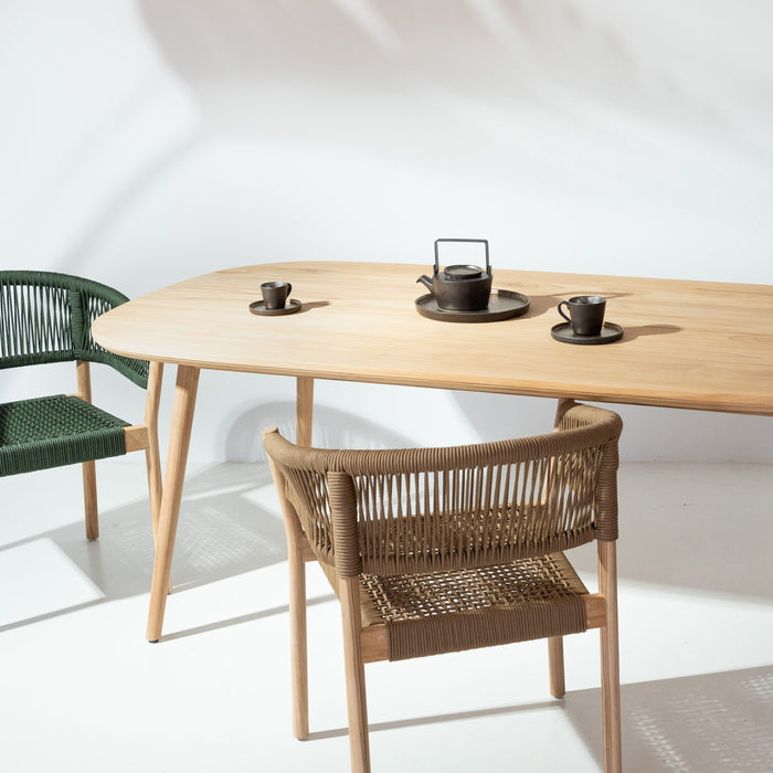 Der Henry Armlehnstuhl ist ein neuer Gartenstuhl der von Interio entwickelt wurde. Das hochwertige zertifizierte Teakholz Gestell, welches von Hand gedrechselt ist, hat ein modernes Design. Die Flechtung aus Soft Rope ist in hoher Handwerkkunst gefertigt und hat einen hohen Sitzkomfort und lädt so zum Verweilen ein. Henry der hochwertige Outdoorstuhl ist stapelbar. Im Herbst ist es zu empfehlen den Stuhl im Inneren aufzubewahren, damit Sie lange daran Freude haben.
