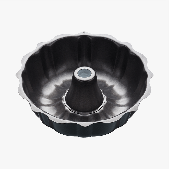 Die runde MASTERCLASS Gugelhupfform wird aus handelsüblichem Carbonstahl hergestellt, der mit einer doppelten Antihaftbeschichtung versehen ist. Sie ist darauf ausgelegt, jahrzehntelang großartige Ergebnisse zu zaubern. Mit ihrem schönen, geriffelten Muster werden Ihre Kuchenkreationen so gut aussehen wie sie schmecken.