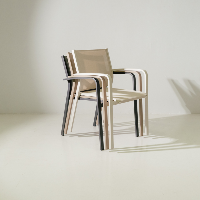 Der PONTI II Armlehnstuhl ist perfekt für den Balkon und die Terrasse geeignet. Der Gartenstuhl ist stapelbar, sein Gestell ist Aluminium pulverbeschichtet. Auch im Innenraum ist der PONTI Stuhl mit seinem schlichten Design ein gefragtes Modell. Der PONTI Stuhl ist wetterfest und lässt sich sehr gut reinigen. Der Ponti Gartenstuhl ist stapelbar.